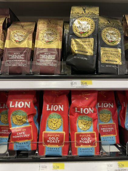 ライオンコーヒー(大容量):$10.39(約1,560円)。TargetはワイキキマーケットやABCより2〜3ドル安めの印象です。