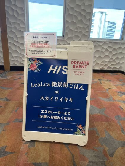 スカイワイキキの朝食は、HIS経由でしか予約できない特別プランです。個人でレストランに直接予約することはできませんので注意しましょう。利用は、HISのツアーまたはLeaLea特典に付帯している場合のみ可能です。今回私はHISツアー予約特典で利用したため、追加料金はゼロ無料でこの特別な絶景朝食を楽しむことができました。