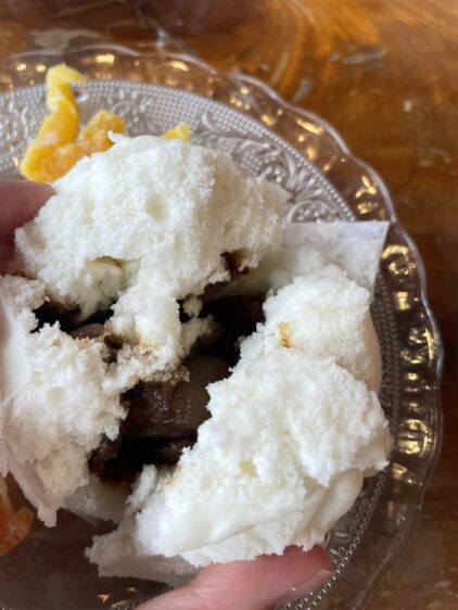 セットのチャーシューまんは、ぎっしりとお肉が詰まっていて食べ応え抜群。自然な甘さのドライフルーツは、さっぱりとした中国茶との相性が抜群でした。お茶と点心のペアリングが、想像以上に贅沢な時間にしてくれます。
