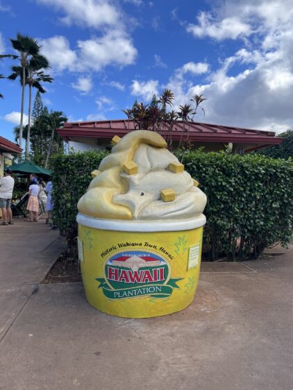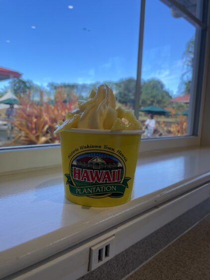 ドール・プランテーションの名物といえば、やっぱりドールホイップ(Dole Whip)!さっぱりとしたパイナップル味のソフトクリームで、観光客に大人気のスイーツです。