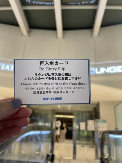 一度ラウンジに入ったけど、外に出たくなった時も安心です。受付で再入室カードをもらえば、簡単に出入りが出来ます!