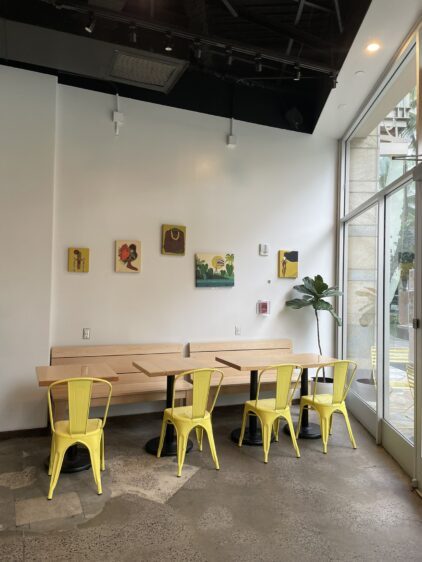 木の温もりを感じる店内と、風が気持ちいいテラス席。テイクアウトしてワイキキビーチで食べるのもおすすめです🌞