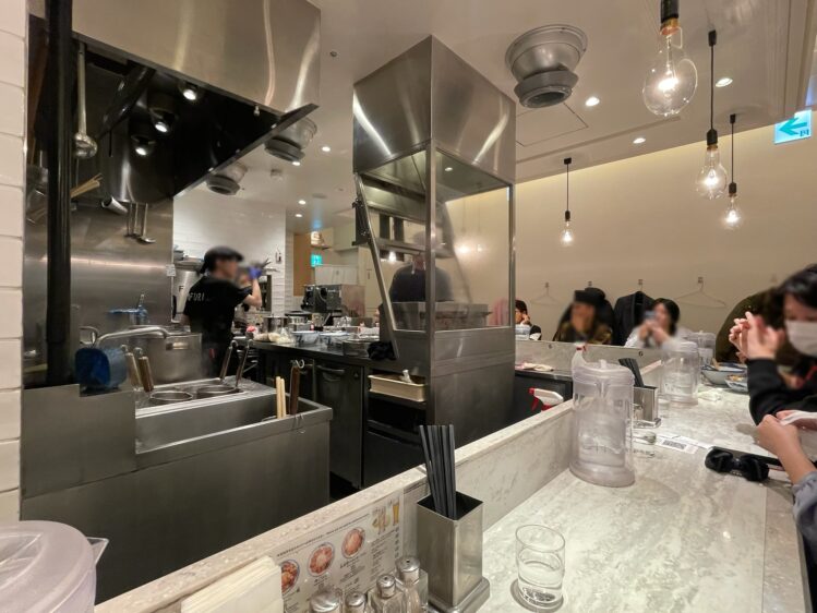 AFURI’s Yokohama branch features an open kitchen, so you can watch the chefs prepare each bowl with impressive precision. The space is bright, clean, and modern, with polished steel counters and warm pendant lights giving it a café-style feel.
