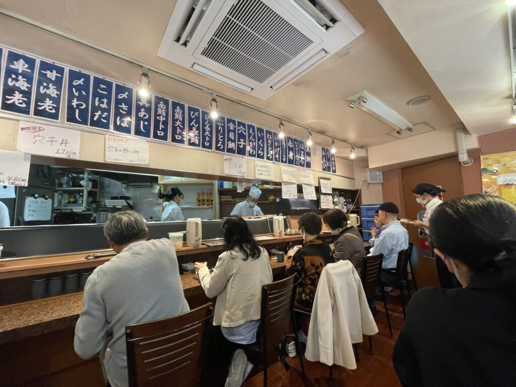 The shop is tiny, so parties of three or more will almost always be separated. If you’re eating as a group, the Heiwa-dōri branch (which is larger and has more tables) is the better option.
