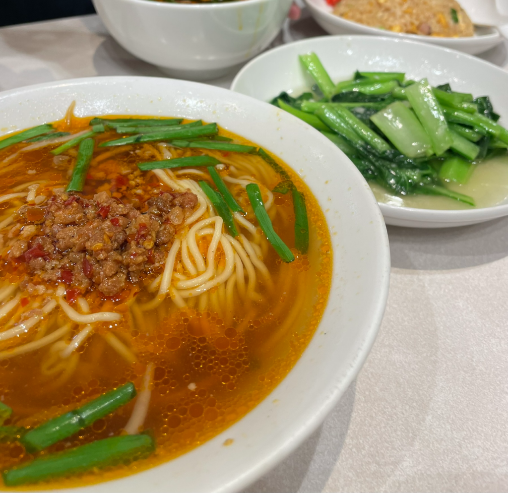 So what makes Taiwanese ramen at Misen different from regular ramen? First, the broth. It’s based on a rich chicken stock, but it carries a serious chilli kick. Then comes the topping: spicy minced pork stir-fried with garlic and fresh red chillies. Finally, crunchy bean sprouts and garlic chives add freshness and texture. Because of this combination, the flavour feels intense, savoury and slightly addictive. In short, it’s not just spicy — it’s balanced, aromatic and deeply satisfying.