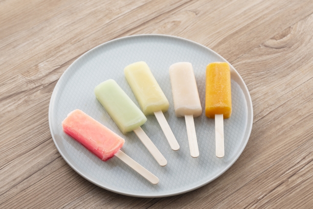 Ice Lollis (on sticks): azuki, milk, cocoa, matcha, pineapple, orange — around ¥190.