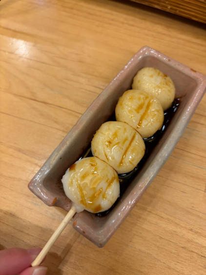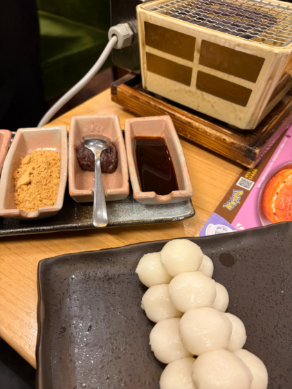 お団子・五平餅・大福・いそべ餅の4種類から好きなものを選んで自分で焼けるのはこの店の魅力!注文すると、席に小さな正方形の焼き台が運ばれます。
